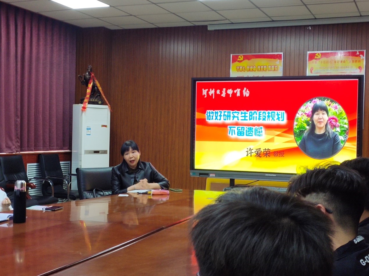 许爱荣教授分享了自己的学习科研经历,就“如何做好研究生生涯规划,毕业后就业去向,读博”等几方面同与会研究生进行深入交流。她表示研究生应该静下心来,投身于实验室,创造出优异的成绩。