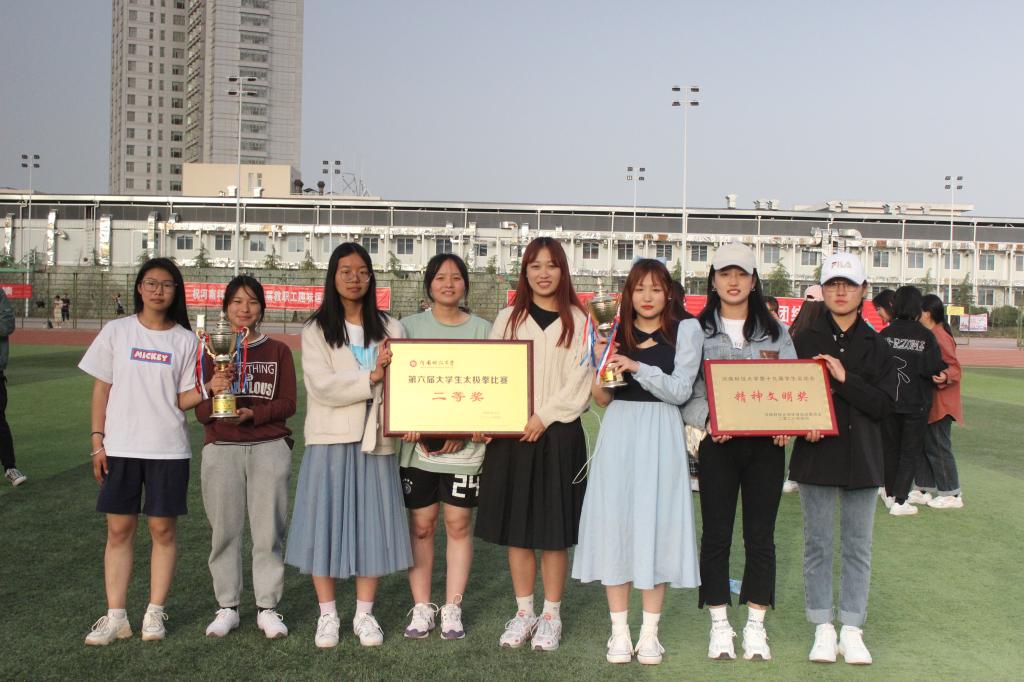 师生的共同努力下,荣获了精神文明奖,取得了团体总分二等奖(第七名)、人均分二等奖(第五名)、太极拳比赛二等奖(第七名)的好成绩。