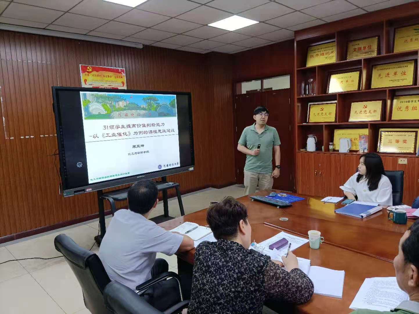 举行了“课程思政”授课比赛。通过教师申报、各系室推荐和学院督导组初评,有5位教师进入决赛。5月26日在工科5号楼227会议室进行决赛,学院领导班子成员、督导组成员以及教师代表参加了观摩了比赛。
