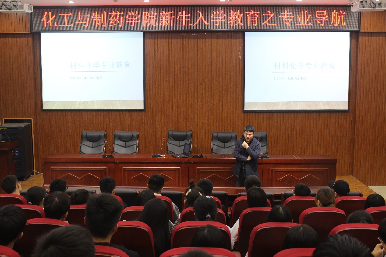2021年10月14日下午18: 30,化工与制药学院在工科五112报告厅举行了新生入学教育之专业导航。本次专业导航由材化专业学业导师陆昶老师主讲。