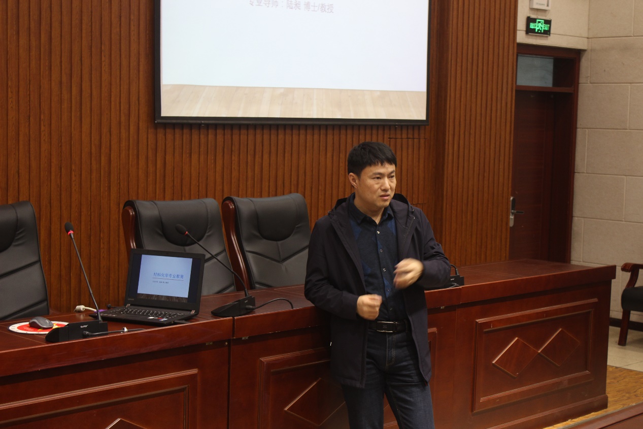 首先,陆老师介绍了系科建设、专业设置及发展状况、教学成果、学生毕业后发展情况(就业、考研)等内容,并介绍了有关学生管理、大学生活规划及要求、党建工作的相关内容。然后,陆老师介绍了材化系实验室规模及发展,系实验老师及教学成果,分析了本专业的定位与人才培养目标、专业建设思路与专业建设成果、现行教学计划以及本专业的学习要求等,提醒同学们注重对动手能力的培养。最后,同学们向老师提出了一些关于考研方面的问题,陆老师一一解答,并为同学们的以后的就业和继续深造进行了深入的分析,提出了相应的发展目标。