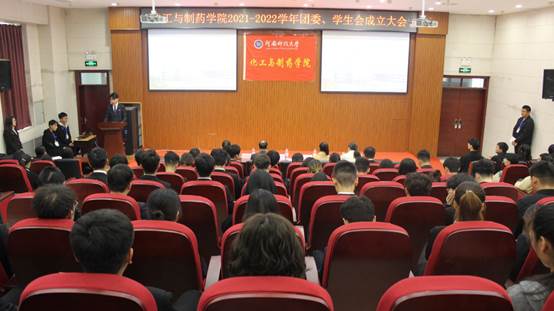 10月28日中午12:10,化工与制药学院于工科五号楼112报告厅召开2021-2022学年团委、学生会成立大会。出席此次大会的有院党委副书记马东辉老师、院团委副书记成一林老师、19级辅导员胡雅雯老师、21级辅导员李明老师,团委、学生会主席团和各部门负责人、各部门工作人员以及20、21级班长、团支书参加此次大会。