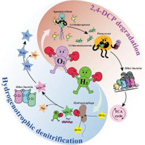 传统生物处理技术在低碳氮比条件下易受微生物生长代谢抑制,叠加氯代有机物的生物毒性后,降解效率显著降低,成为工业尾水处理的核心瓶颈。针对这一挑战,本研究提出基于"氢/氧开关"调控的分级生物处理体系,通过周期性切换H2/O2供给模式定向引导电子传递路径,激活微生物联合体的跨种群代谢网络,实现氢自养反硝化脱氮与氯酚矿化的深度耦合。采用多组学整合分析策略,通过16S rRNA基因测序、宏基因组学和代谢组学等技术,解析了氢/氧条件下微生物群落结构演替、功能基因表达及代谢途径,识别出关键功能微生物及其核心基因,初步阐明氯酚降解的代谢网络及微生物互作机制。并以实际焦化废水验证了"氢/氧开关"调控模式的可行性,该工作为处理含酚和氮的工业废水提供了一种有前景的技术参考。